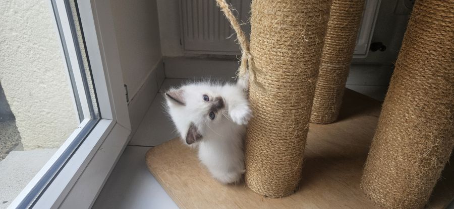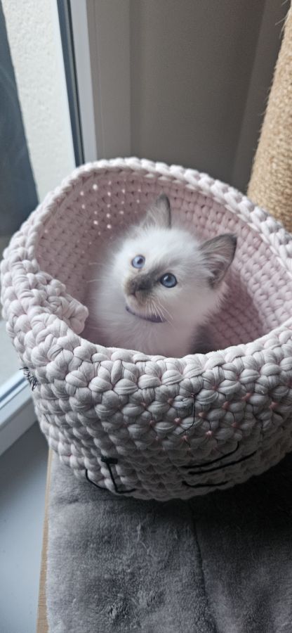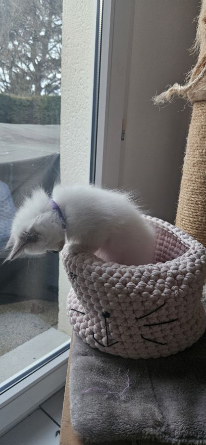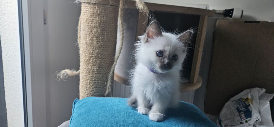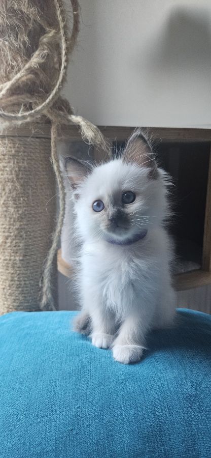 Nous sommes heureux de vous proposer ces adorables chatonnes SACRÉ DE BIRMANIE LOOF. Elle est née le 14 octobre 2025, est pleine d' énergie, de douceur et d'affection. Elle vit avec nous, partage tous nos regroupements familiaux, est habituée aux bruits des appareils ménagers du quotidien et socialisée avec toute l'attention de nos enfants et de nous même. Elle est de couleur chocolat point.