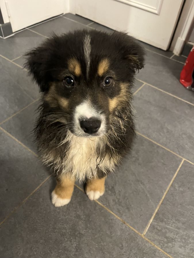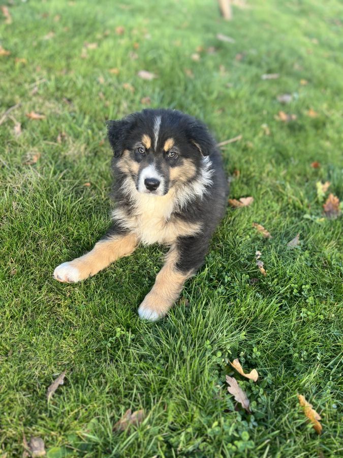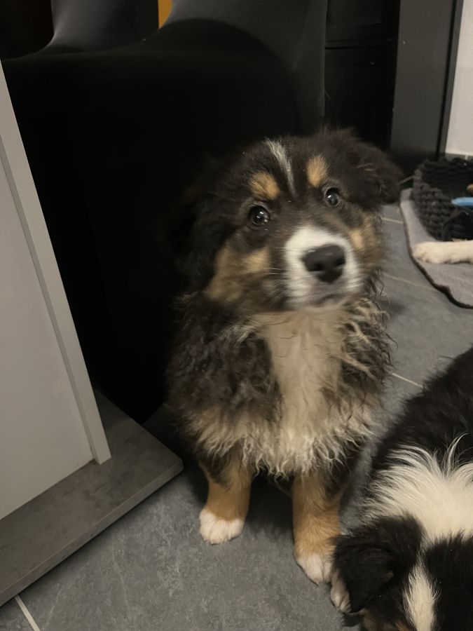 Petit berger australien noir tricolore queue courte recherche sa nouvelle famille ! Chiot très affectueux qui commence à apprendre la propreté ainsi que les « bases » assis, coucher