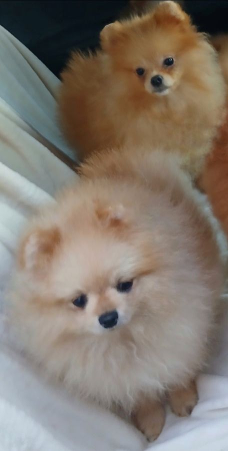 Nous cherchons des merveilleuses familles pour nos magnifiques bébés Spitz pomeranians oranges et crèmes. Nous avons des mâles et femelles très mignons, câlins, doux.