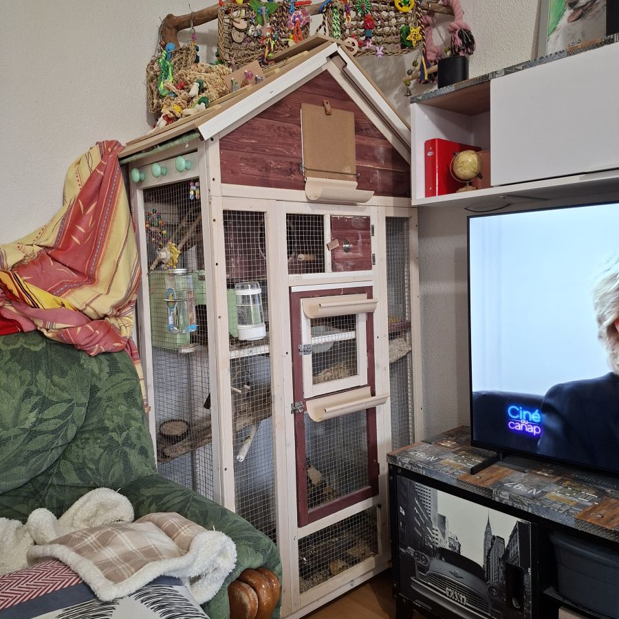 Orion 120 euros, Béryl 100 euros, leur volière 100 euros.