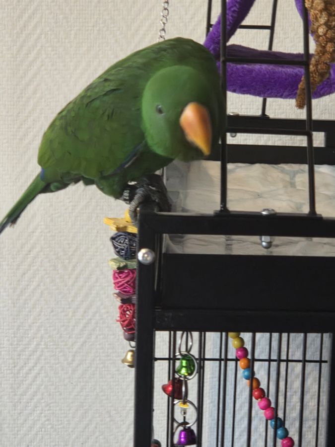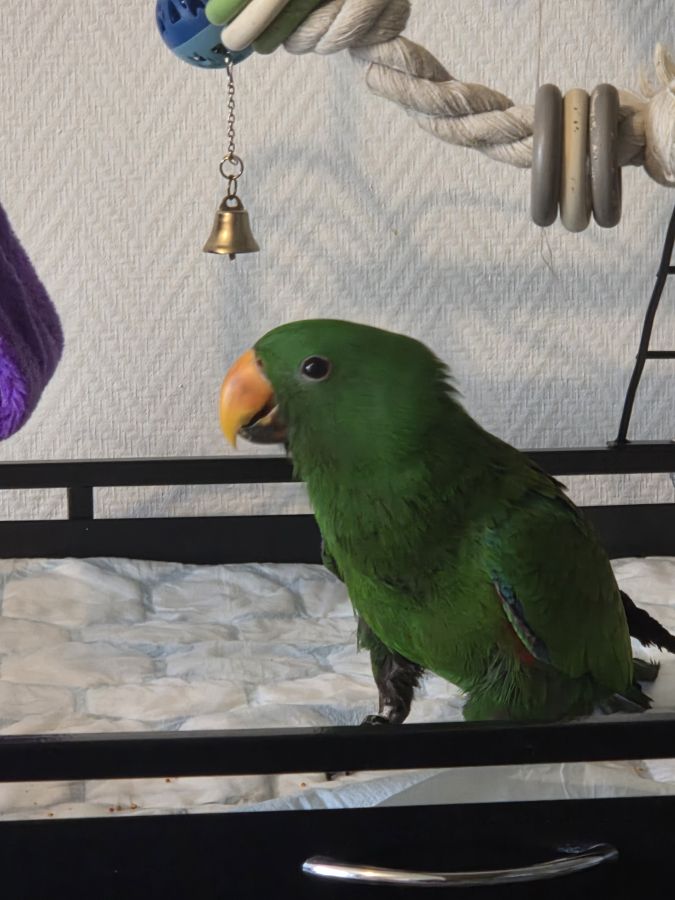 Recherche très bonne famille pour mon perroquet éclectus mâle de 6 mois élevé a la main baguer ( avec documents ). Il est gentil viens sur nous joeur