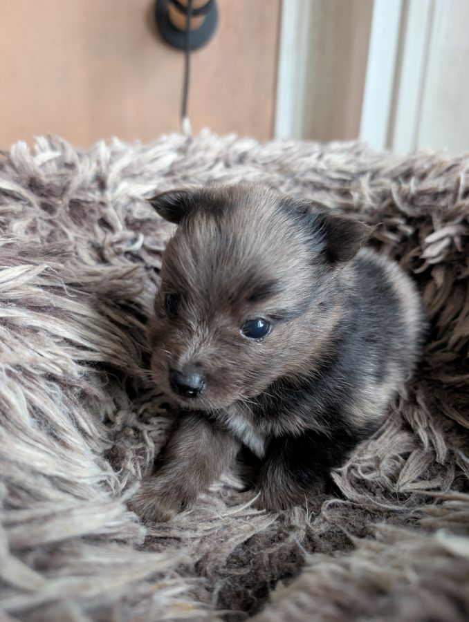 Petite spitz sable charbonnée Mère bleu merle de 27cm au garrot Et ...