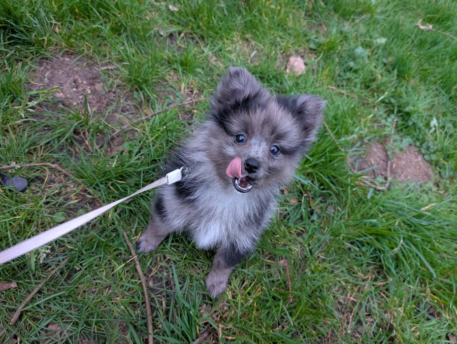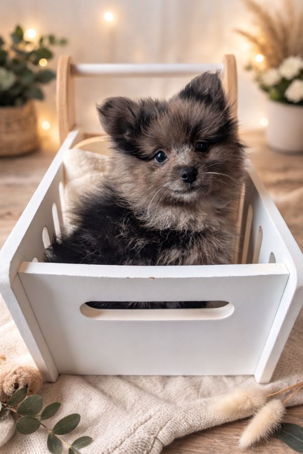 Notre magnifique petit Spitz bleu merle, né le 26 décembre, est encore à la recherche de sa famille pour la vie 🐾
