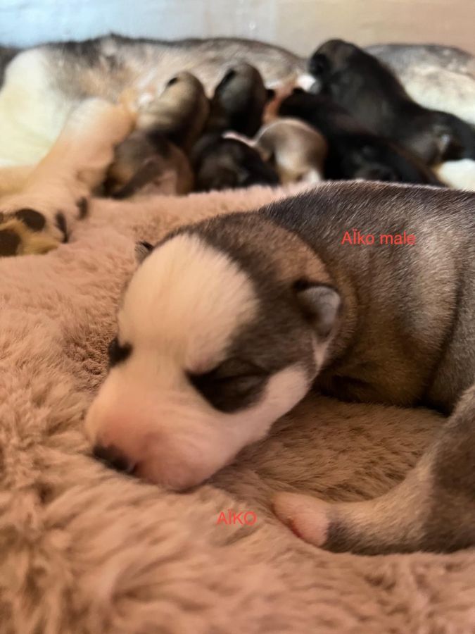 vends husky de siberie lof portée de 6 chiots 3 mâles et 3 femelles né le 24 décembre 2025 à réserver. ils serons disponibles début mars 2026