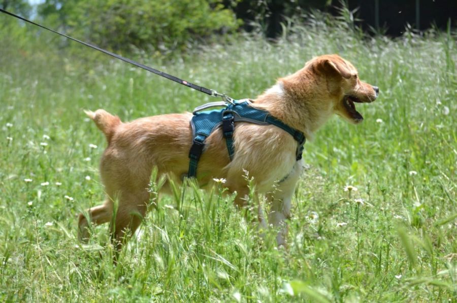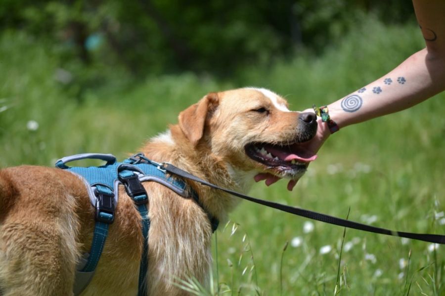 Oso marche parfaitement en laisse, se laisse manipuler sans souci, et surtout, il aime faire plaisir. Dès qu’il sort du refuge, il se transforme en bulle de bonheur : un vrai distributeur automatique de bonne humeur.