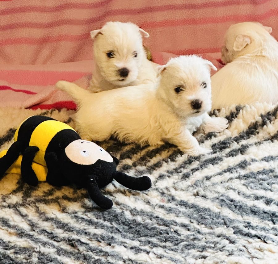 À RÉSERVER – WEST HIGHLAND WHITE TERRIER (WESTIE) 4 magnifiques chiots Westie L.O.F – Lignées issues de MULTI-CHAMPIONS de Beauté