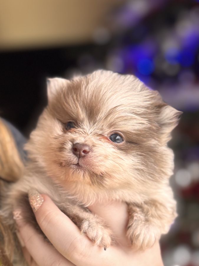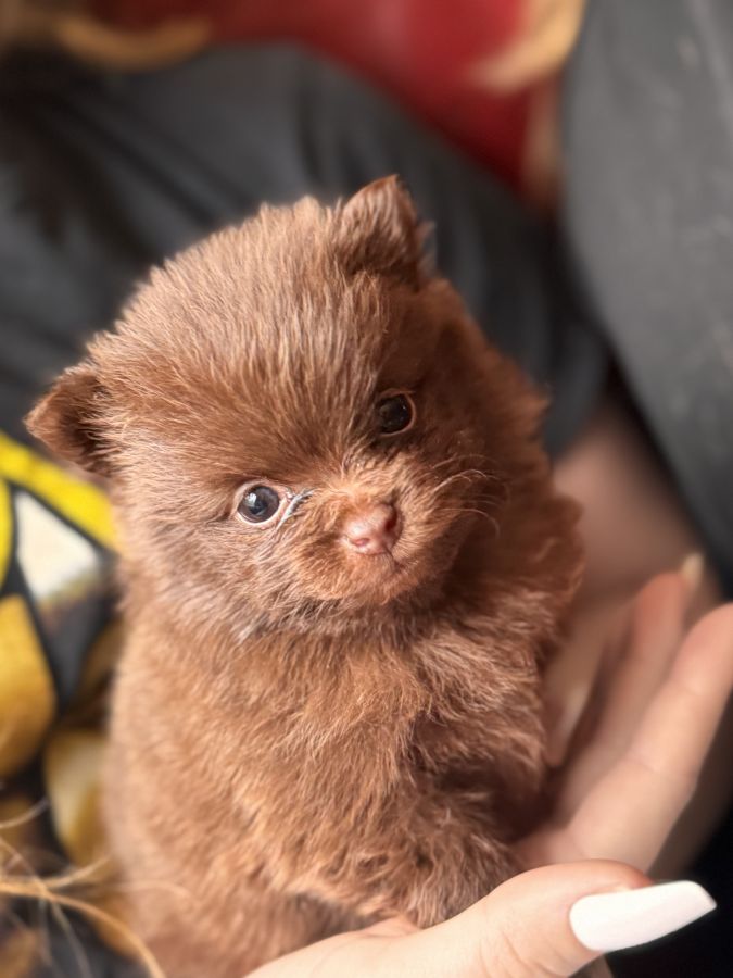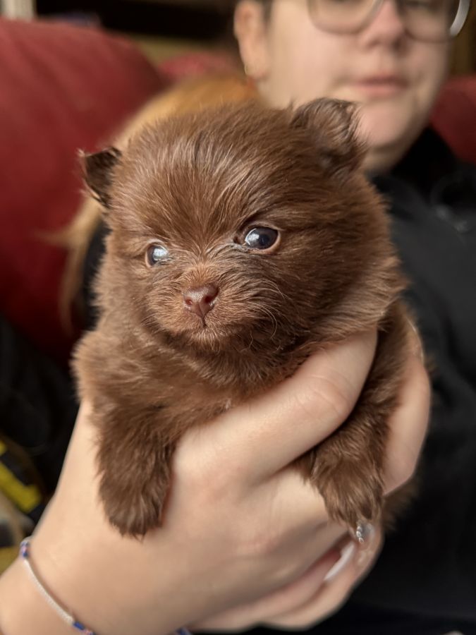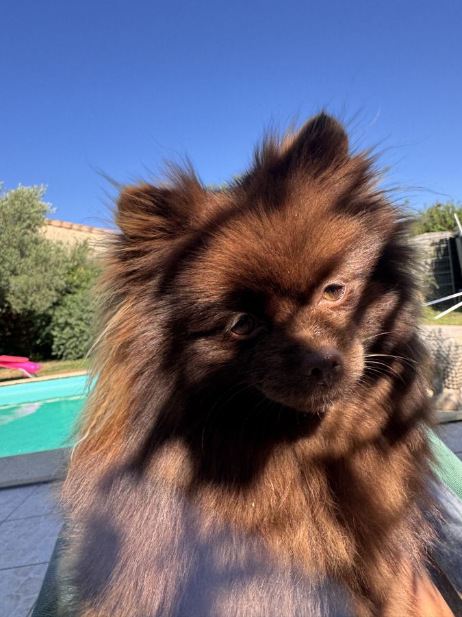 DISPONIBLES pour une famille idéale 2 petites femelles et 1 mâle d’apparence spitz nain Pomeranian. 1 fifille merle chocolat, 1 fifille chocolat et 1 mâle chocolat. Ils ressembleront en tout point à leurs parents Vaïa et Unik.