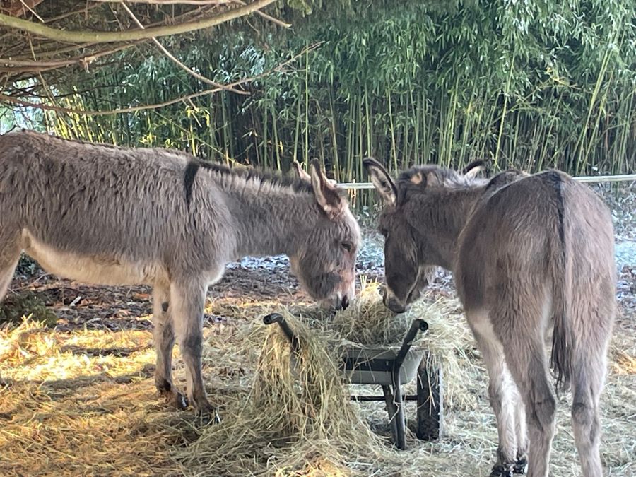 La ferme de la Brutz vous propose Hévéa 8 ans et son petit ânon Pit...