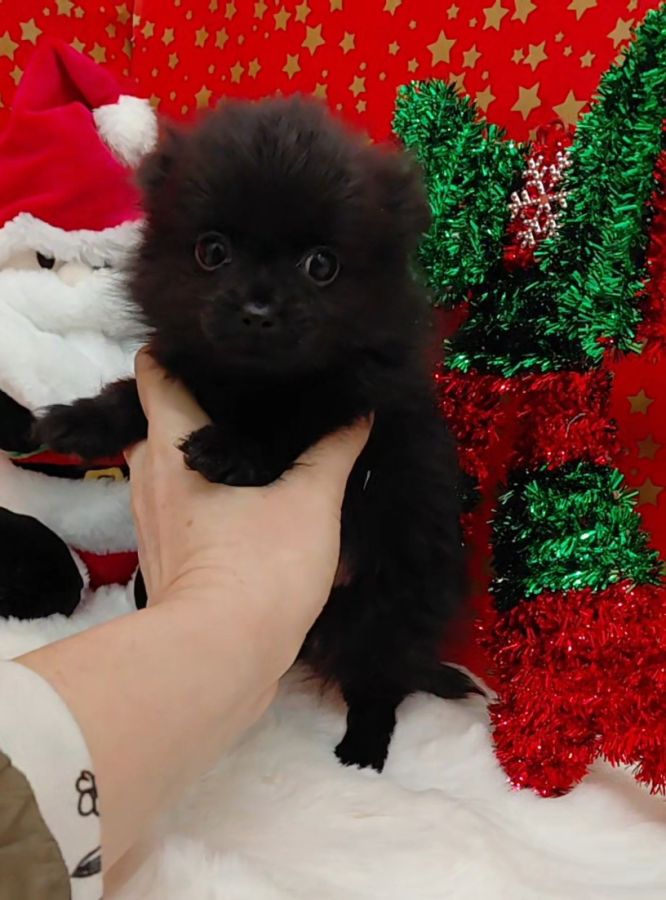 Bonjour, je vous présente Armonie. Une petite femelle pomchi issue d'une maman spitz petit et d'un papa chihuahua à poil long. Armonie est toute petite. Elle ne pèse que 550g. Elle sera de petit gabarit une fois adulte. Elle est très affectueuse et aussi très joueuse. Elle est vraiment mignonne comme tout. Elle est toute noire avec un tout petit peu de blanc sur le poitrail. Elle est pucée, vaccinée et a un certificat de bonne santé. Elle est aussi a jour de vermifuge.