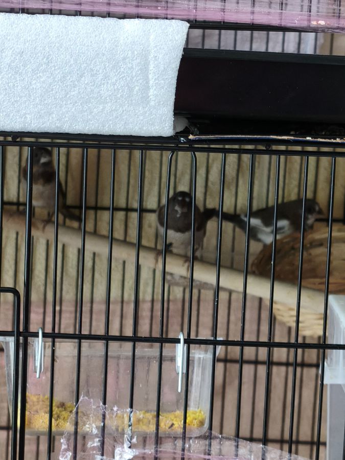 3 moineaux du japon de la meme portée 2 mâles sûr ils chantent et une femelle je pense