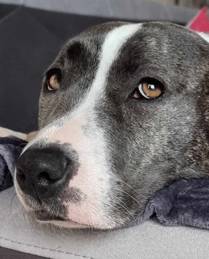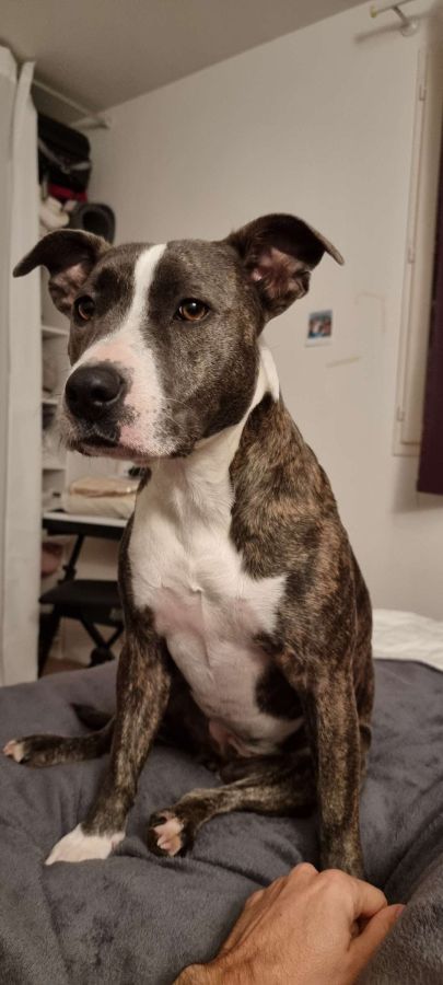 Pour des raisons familiales et professionnelles je ne peux plus m'occuper d'Oslo, adorable American staffordshire terrier femelle de 4 ans et demi.