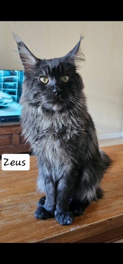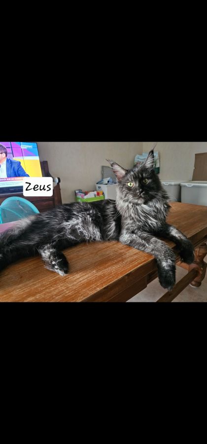 Je me vois dans l'obligation de réduire mon elevage , je met donc a l'adoption mon mâle maine coon loof Black smoke .nés le 23/02/24 .