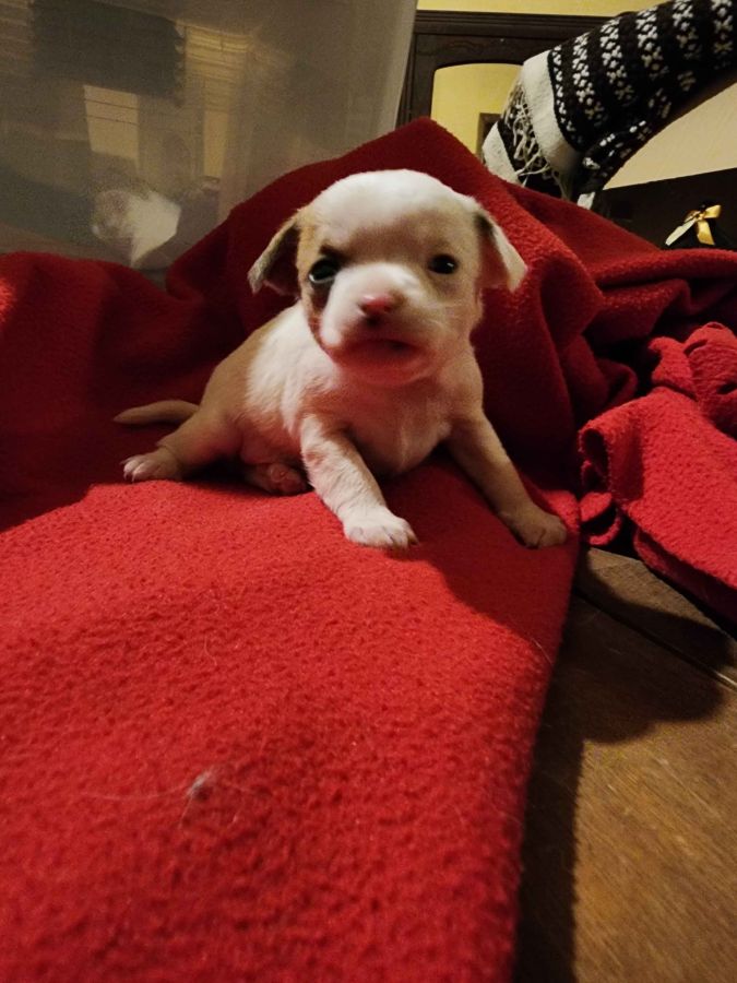 Chiot née le 17 décembre 2025 un petit ange de couleur blanche tacher marron, maman croisé chihuahua shitzu et papa pur chihuahua, parents sur place élever en famille habituer au toucher et a d'autre animaux.