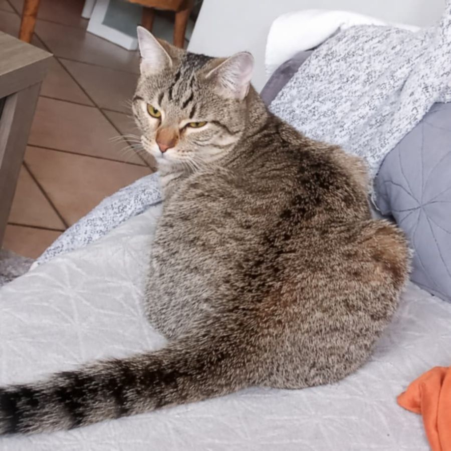 Elle est habituée aux autres chats et aux chiens. Joueuse et gourmande, jeux et friandises sont de bons moyens pour créer un lien avec elle.