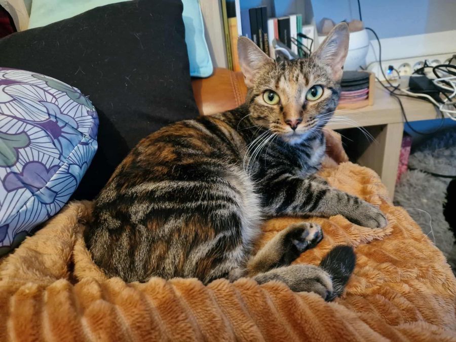 Coco est en famille d'accueil et se révèle très caline, adorable même Avec tous les humains qui l'approchent.
