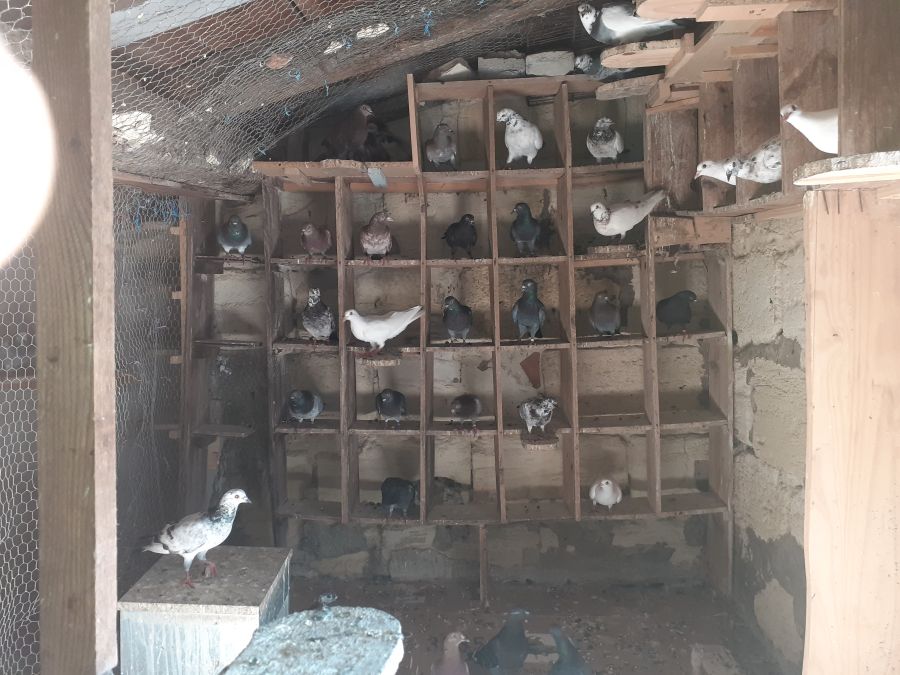 JEUNES PIGEONS TYPE VOYAGEUR COULEUR MOSAÏQUE en Bonne Santé, traités au Soluvert, au Solucox et à l'huile d'Aïl...