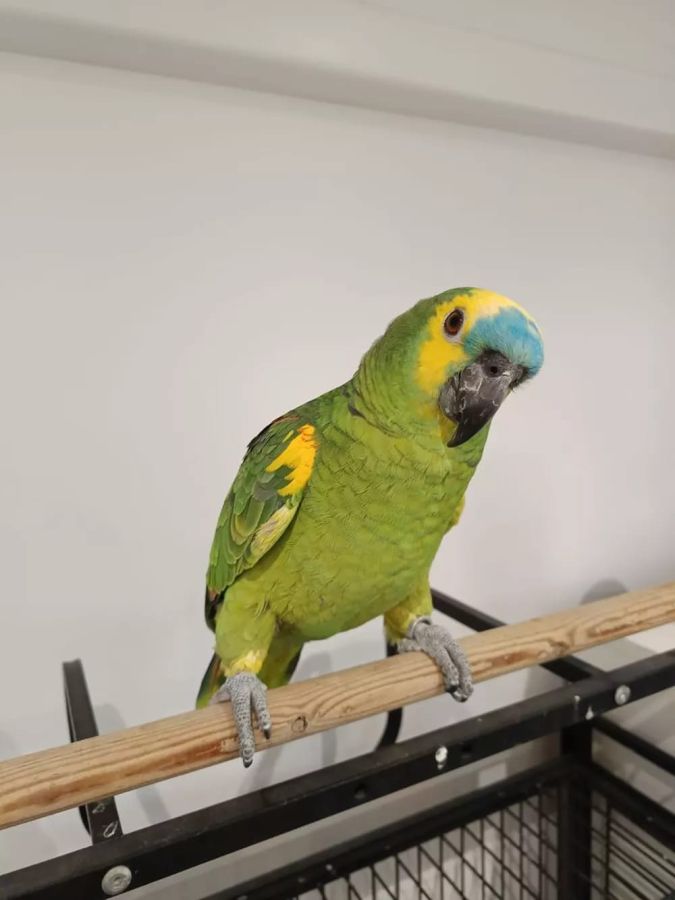 À vendre amazone à front bleu, il a 1 an . Il est très sociable, super caractère et il commence à dire quelques mots .
