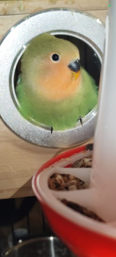 Bonjour voici une jeune femelle inséparable roseicollis sexage ADN. Élevé par les parents