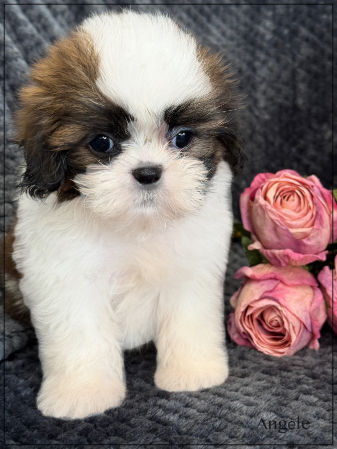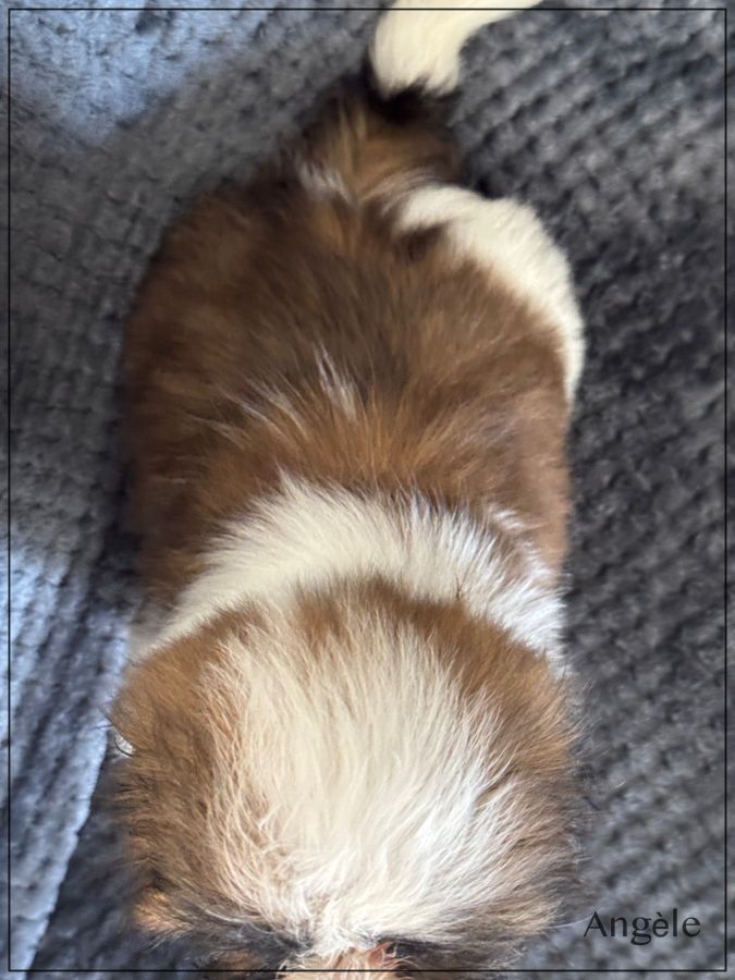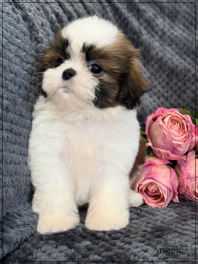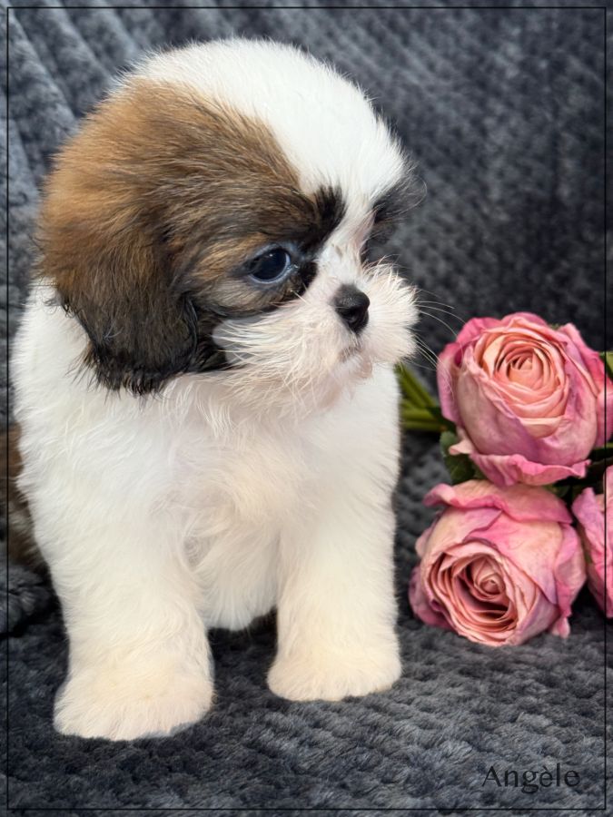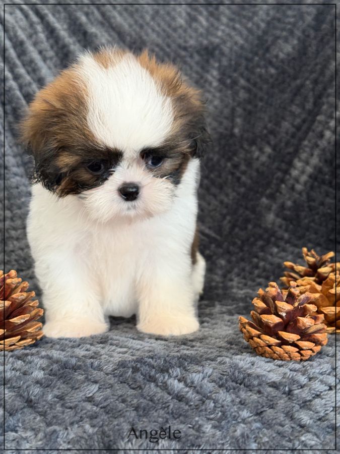 A réserver, Angèle, superbe femelle shih tzu , fauve et blanc, tout en rondeur, petit modèle, véritable nounours, née le 25 novembre dernier, disponible à partir de début février, issue d'une portée de 5 chiots , bon type et très belle qualité de fourrure, vendue pucée ,vaccinée, lof , certificat sanitaire de bonne santé, mutuelle pendant 2 mois offerte .Elle est élevée dans un univers complètement familial, elle fera le bonheur d'une famille. Elle vous enchantera de part son look, son caractère ainsi que sa fourrure en abondance, facile d'entretien. Nous sommes proches de Lyon . Facilités de paiement possible en 4 fois par CB. Suivi et conseils après la vente. Garantie jusqu'à l'âge d'un an en cas de décès suite maladie ou malformation héréditaire ou congénitale