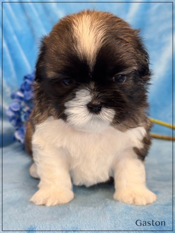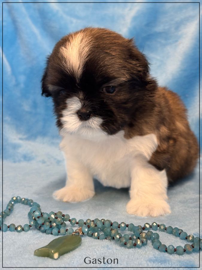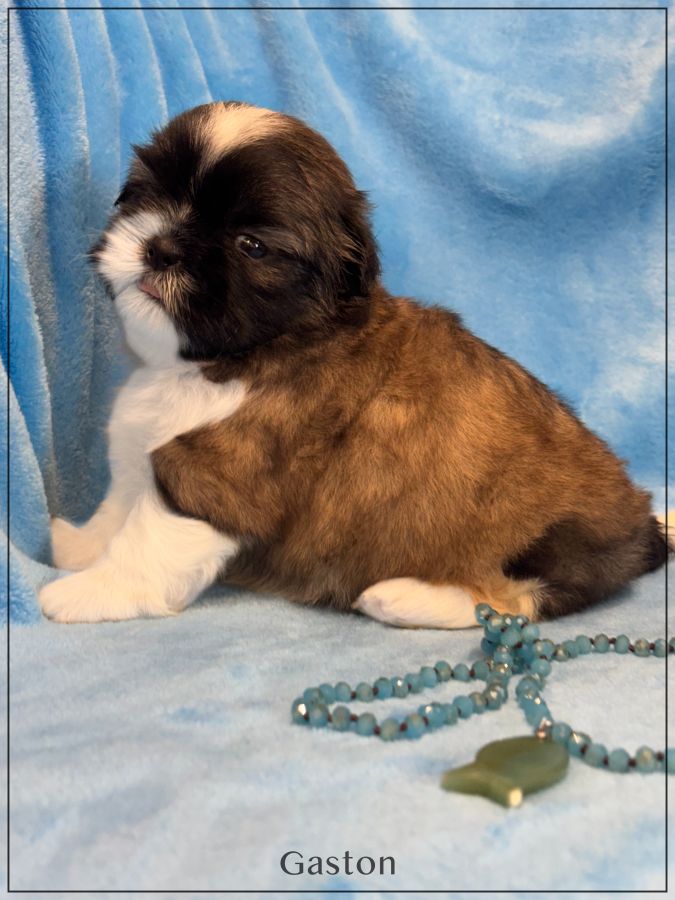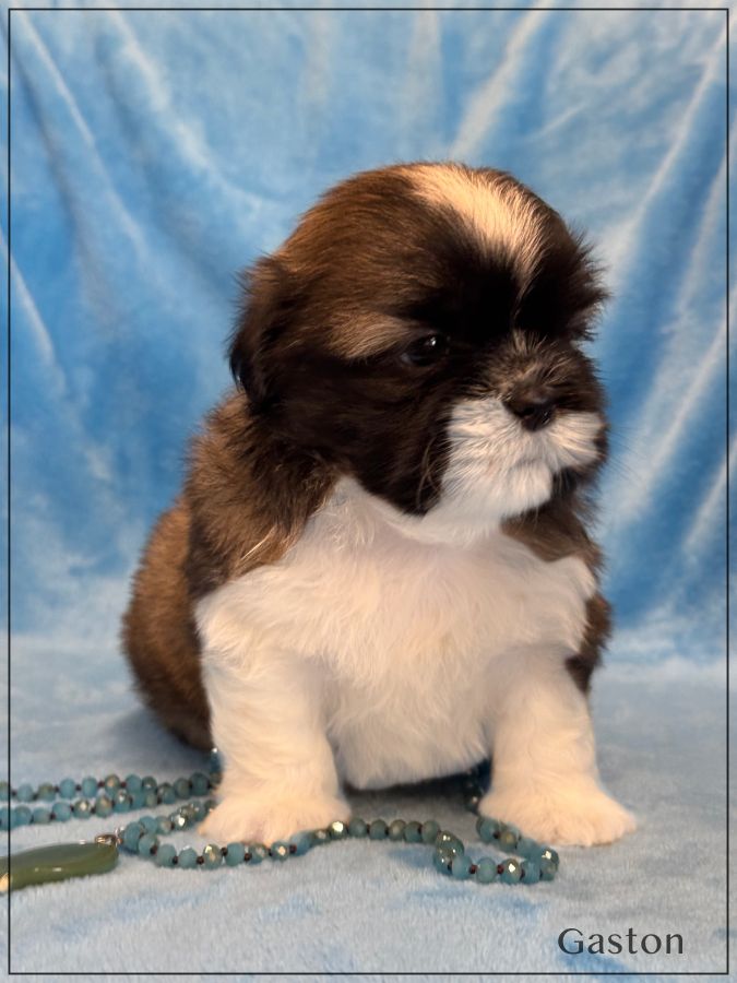 A réserver, Gaston, superbe mâle type shih tzu , fauve et blanc, tout en rondeur, véritable nounours, né le 15 décembre dernier , disponible à partir de fin février, issu d'une portée de 4 chiots , bon type et très belle qualité de fourrure.Les deux parents sont inscrits au Lof. Gaston est vendu pucé ,vacciné, certificat sanitaire de bonne santé, mutuelle pendant 2 mois offerte .Il est élevé dans un univers complètement familial, il fera le bonheur d'une famille. Il vous enchantera de part son look, son caractère ainsi que sa fourrure en abondance, facile d'entretien. Nous sommes proches de Lyon . Facilités de paiement possible en 4 fois par CB. Suivi et conseils après la vente. Garanti jusqu'à l'âge d'un an en cas de décès suite maladie ou malformation héréditaire ou congénitale