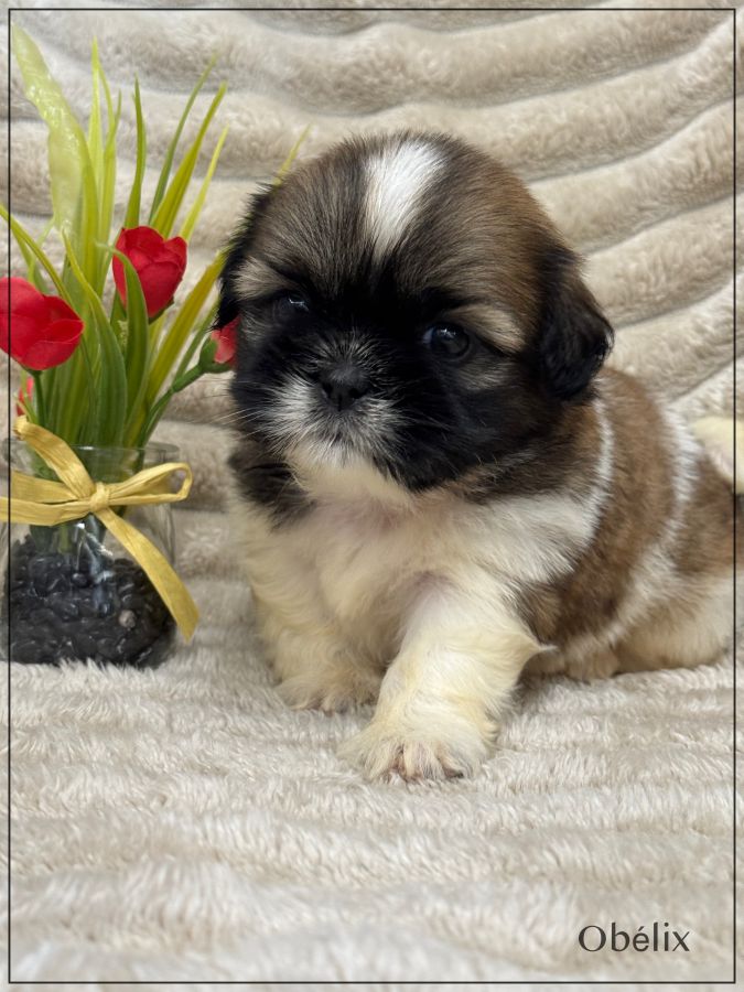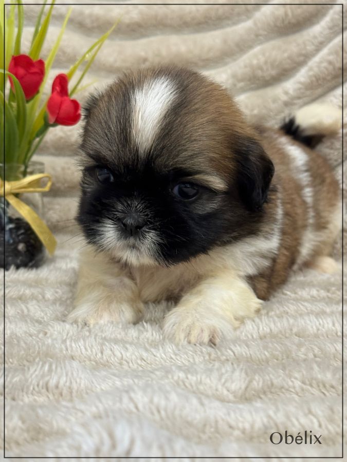 A réserver, Obélix, superbe mâle type shih tzu , fauve et blanc, tout en rondeur, véritable nounours, né le 15 décembre dernier , disponible à partir de fin février, issu d'une portée de 4 chiots , bon type et très belle qualité de fourrure.Les deux parents sont inscrits au Lof. Obélix est vendu pucé ,vacciné, certificat sanitaire de bonne santé, mutuelle pendant 2 mois offerte .Il est élevé dans un univers complètement familial, il fera le bonheur d'une famille. Il vous enchantera de part son look, son caractère ainsi que sa fourrure en abondance, facile d'entretien. Nous sommes proches de Lyon . Facilités de paiement possible en 4 fois par CB. Suivi et conseils après la vente. Garanti jusqu'à l'âge d'un an en cas de décès suite maladie ou malformation héréditaire ou congénitale
