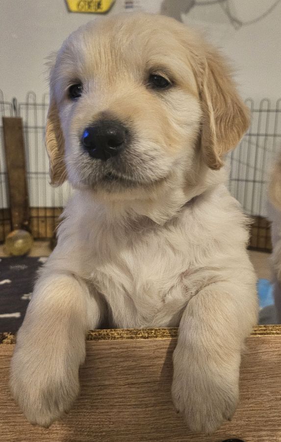 Nés le 25/12/2025, nous proposons 3 magnifiques mâles Golden Retriever LOF, disponibles à partir de fin février 2026.