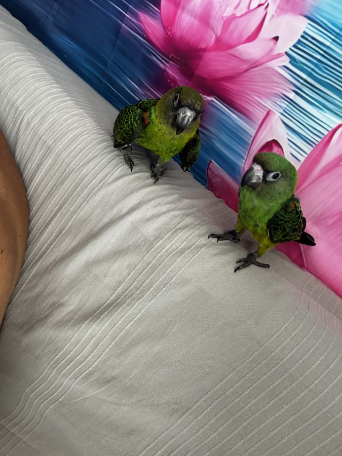 Couple de perroquets de jardine de 2025 commence à dire quelques mots très affectueux ,avec cage