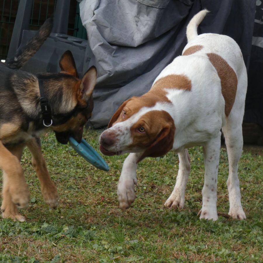 Encore un peu brute dans ses gestes (un peu de maladresse de jeune chien 😄)
