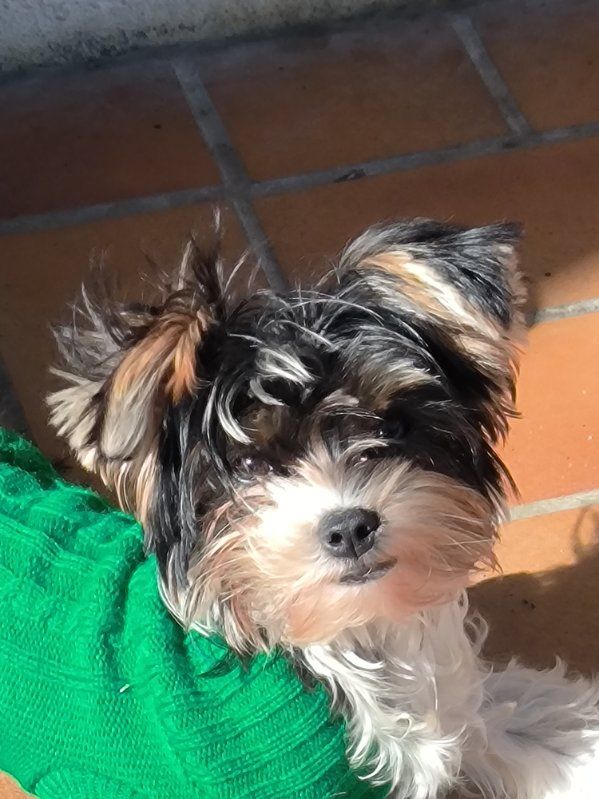 Je suis d un caractère espiègle,tonique, très affectueux et très proche de mon maître.Je sais aussi être un petit chien d alarme quand je constate quelque chose de louche!!!😊