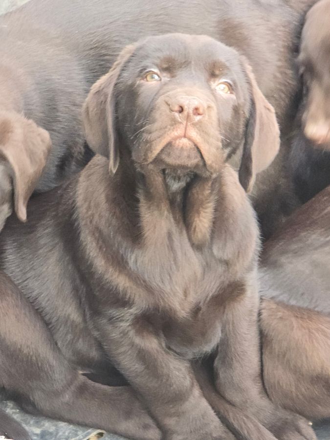 Sur une portée de 7 chiots, 2 chiots labrador retriever lof encore à réserver.