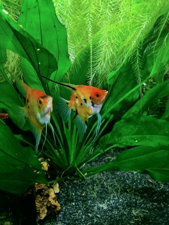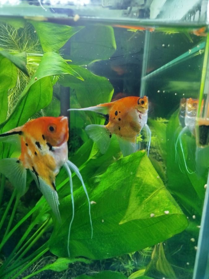 Je propose des jeunes Scalaires Koi , environ de 3 cm de taille. Il...