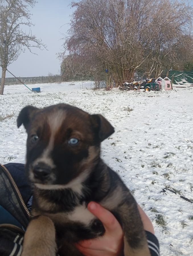 A vendre chiot husky croisé boxer femelle née le 25/11/2025 elle est puce vacciné vermifuge elle est habituée aux chiens chats enfants oiseaux et chevaux elle est disponible immédiatement pour plus de renseignements veuillez me contacter cordialement