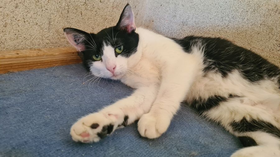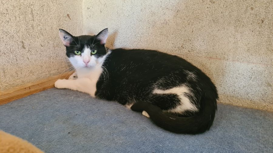 UTOPY est une jeune minette noire et blanche, de type européen non loof, née approximativement en Juin 2023.