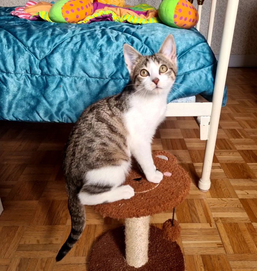 A côté de ça c'est un bébé câlin qui a besoin de tendresse et d'amour; De bras réconfortants pour se blottir et offrir ses ronrons.