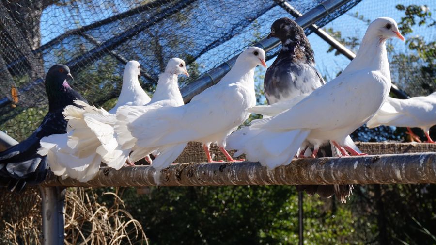Magnifiques pigeons paon blanc, parfaits pour les amateurs d’oiseaux d’ornement ou les passionnés d’aviculture. Leur élégance naturelle et leur grande queue en éventail en font des oiseaux uniques et captivants.