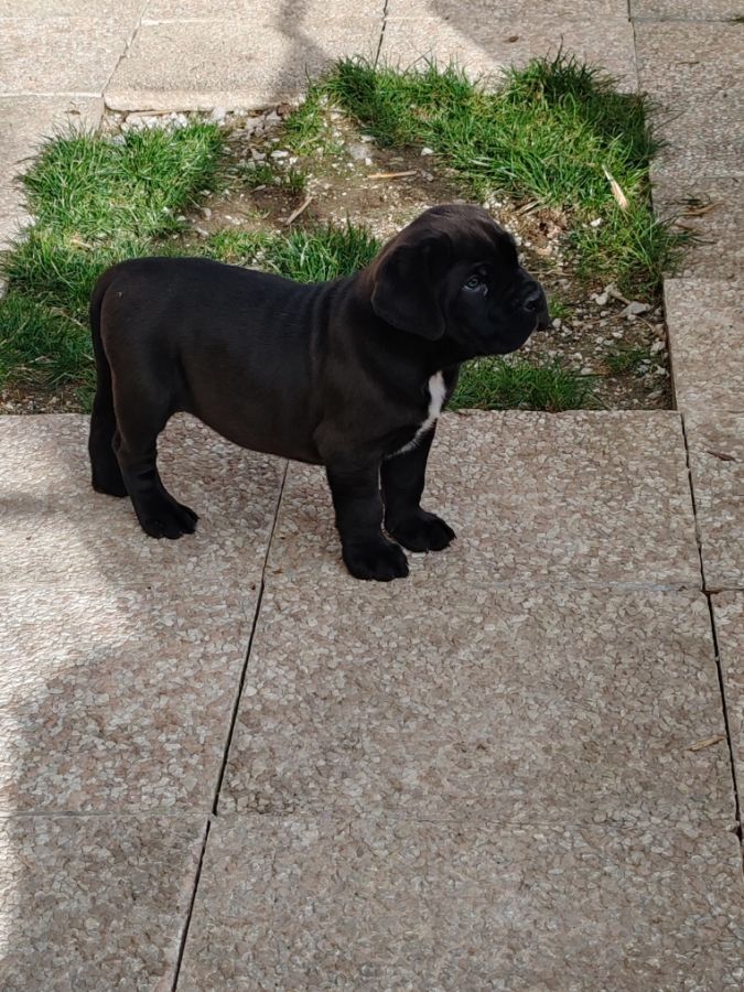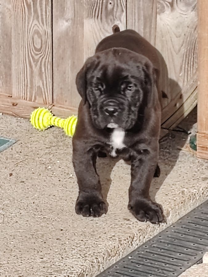 AZZARO, beau male cane corso LOF noir plastron blanc, né le 30/11/2025 cherche sa famille pout la vie.