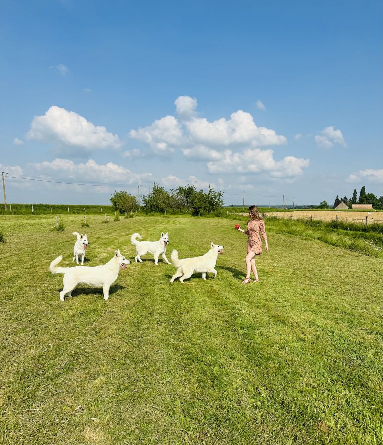 Nos loulous évoluent dans notre maison (pas de chenil) et sont habitués aux enfants et autres animaux.