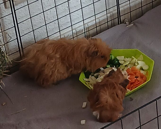 Cochons d'inde mâles. Le père est âgé de 6 mois et le fils à 1 mois.