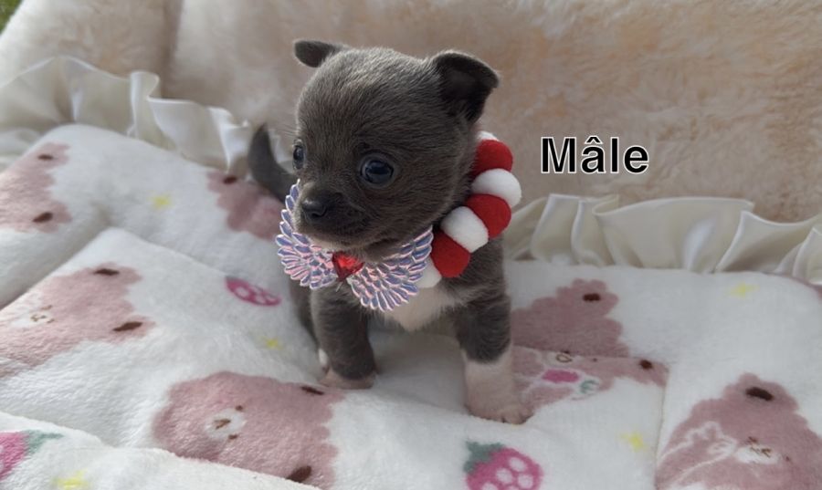 Chiots chihuahua Une femelle bleu à poils long un mâle bleu poils court à réserver disponible à rejoindre une nouvelle famille à partir du 24/02/26