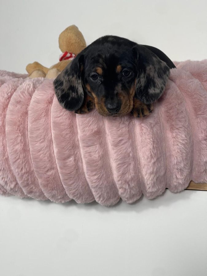 Magnifique femelle teckel nain arlequin