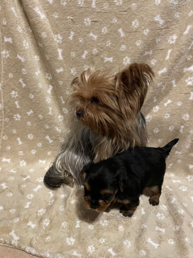 Chiot yorkshire mâle né le 31 décembre 2025 de couleur noir et feu très joueur et malin