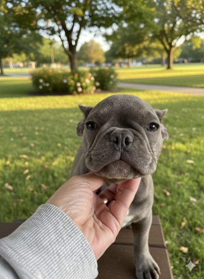 Chiot type bouledogue français bleu