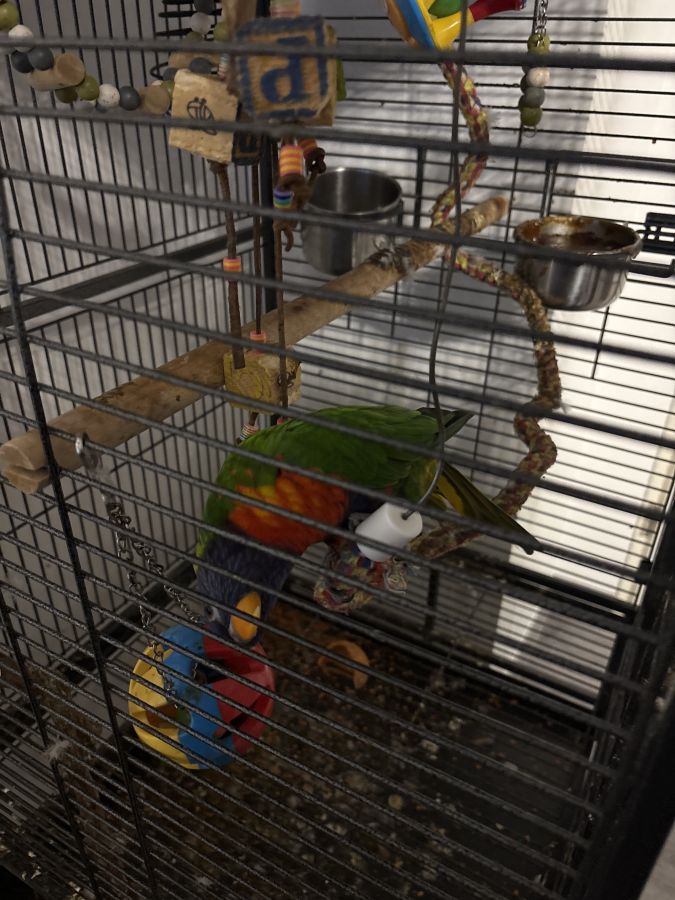 Bonjour je vend mon Loriquet arc en ciel qui as 2 ans il as été élever à la main et il est sociable avec les chiens , les chats , les enfants