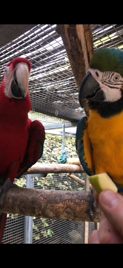 Vend a éleveurs amateurs ou personnes passionnés, un couple de Ara EAM , femelle chloroptere et mâle Ararauna inséparables.