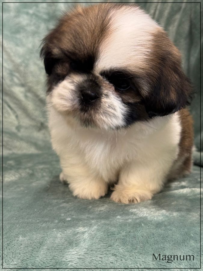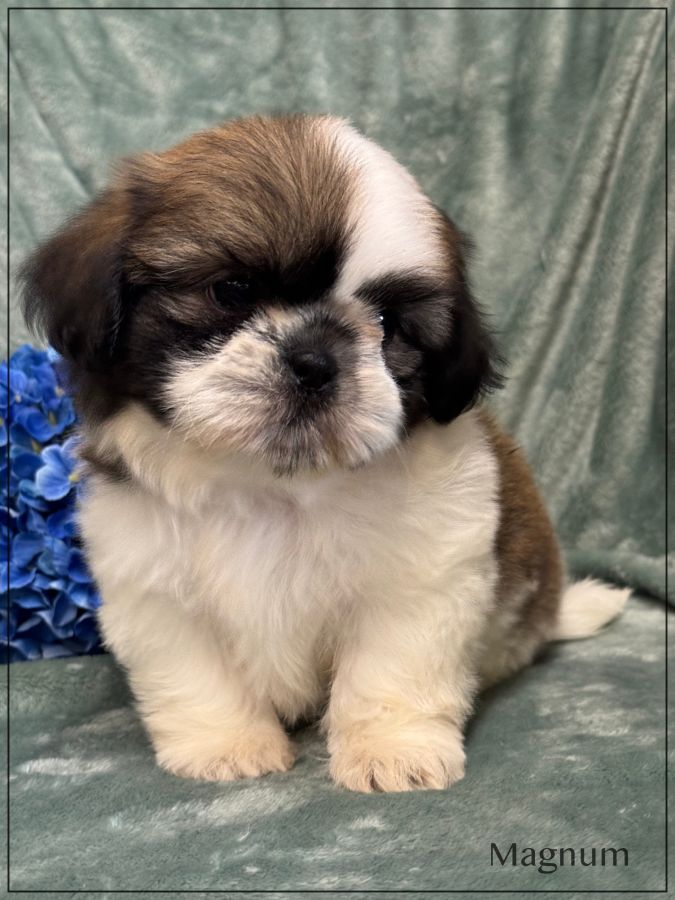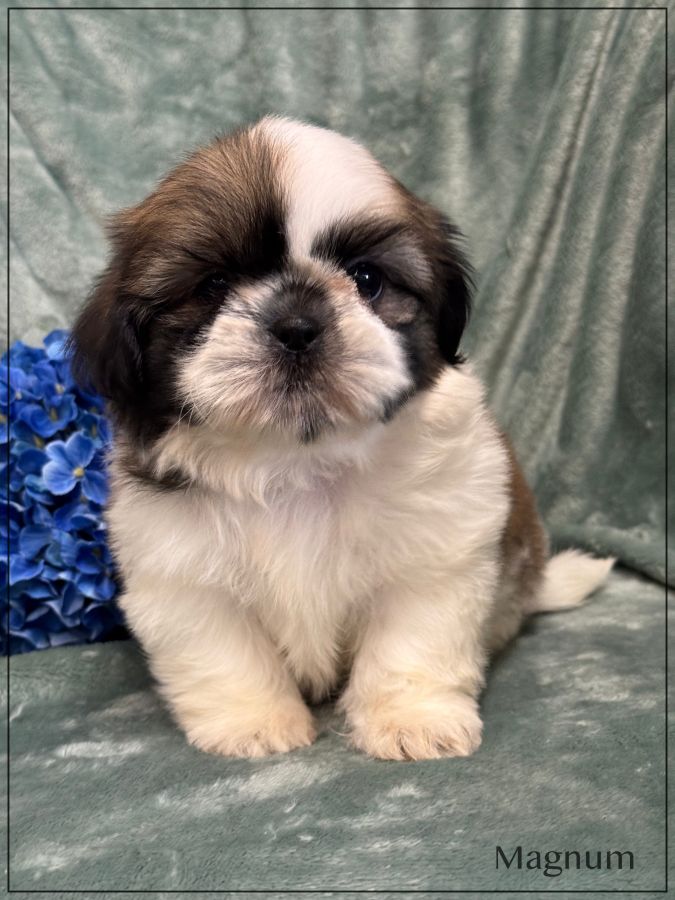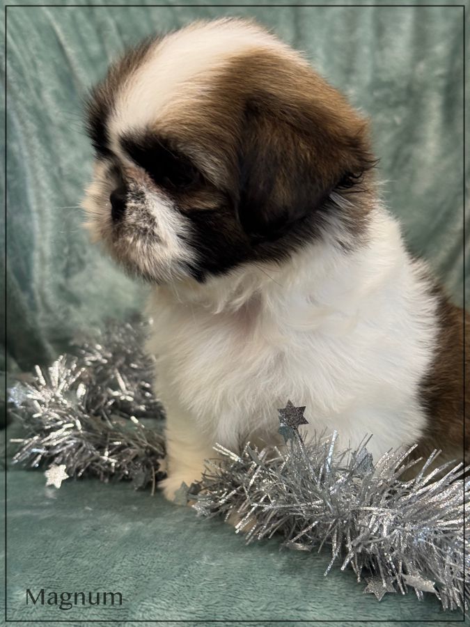 A réserver, Magnum, superbe mâle type shih tzu , fauve et blanc, tout en rondeur, véritable nounours, né le 18 décembre dernier , disponible à partir de fin février, issu d'une portée de 4 chiots , bon type et très belle qualité de fourrure.Les deux parents sont inscrits au Lof. Magnum est vendu pucé ,vacciné, certificat sanitaire de bonne santé, mutuelle pendant 2 mois offerte .Il est élevé dans un univers complètement familial, il fera le bonheur d'une famille. Il vous enchantera de part son look, son caractère ainsi que sa fourrure en abondance, facile d'entretien. Nous sommes proches de Lyon . Facilités de paiement possible en 4 fois par CB. Suivi et conseils après la vente. Garanti jusqu'à l'âge d'un an en cas de décès suite maladie ou malformation héréditaire ou congénitale