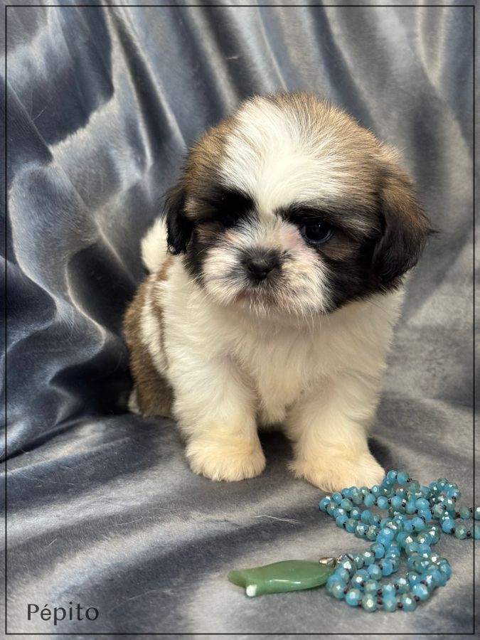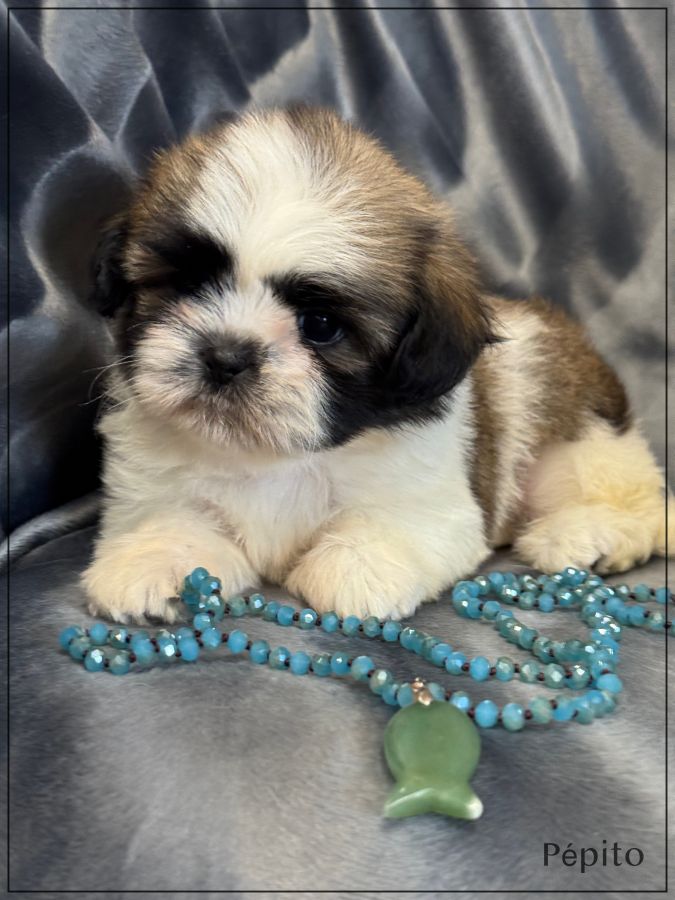 A réserver, Pépito, superbe mâle type shih tzu , fauve et blanc, tout en rondeur, véritable nounours, né le 18 décembre dernier , disponible à partir de fin février, issu d'une portée de 4 chiots , bon type et très belle qualité de fourrure.Les deux parents sont inscrits au Lof. Pépito est vendu pucé ,vacciné, certificat sanitaire de bonne santé, mutuelle pendant 2 mois offerte .Il est élevé dans un univers complètement familial, il fera le bonheur d'une famille. Il vous enchantera de part son look, son caractère ainsi que sa fourrure en abondance, facile d'entretien. Nous sommes proches de Lyon . Facilités de paiement possible en 4 fois par CB. Suivi et conseils après la vente. Garanti jusqu'à l'âge d'un an en cas de décès suite maladie ou malformation héréditaire ou congénitale