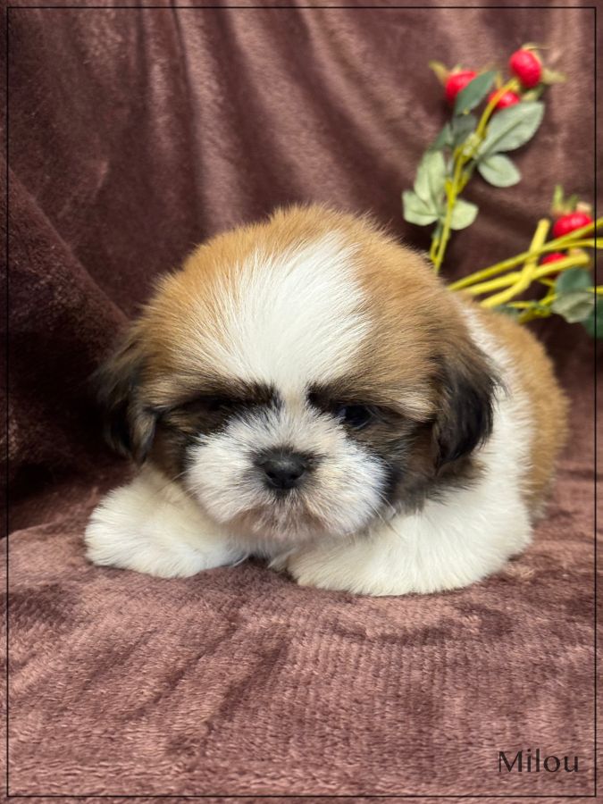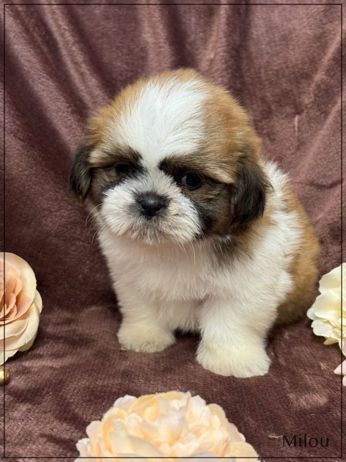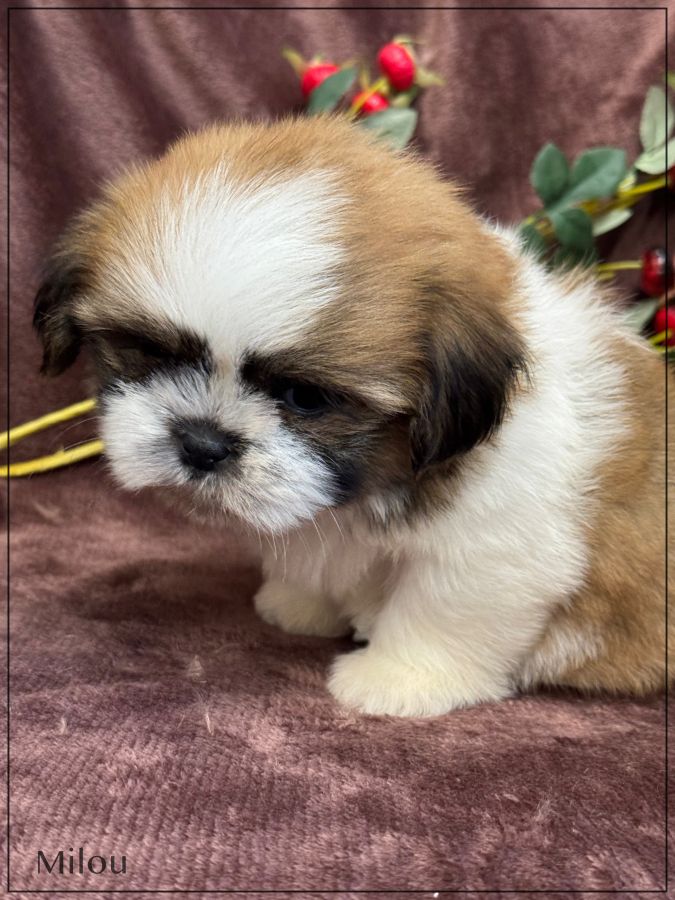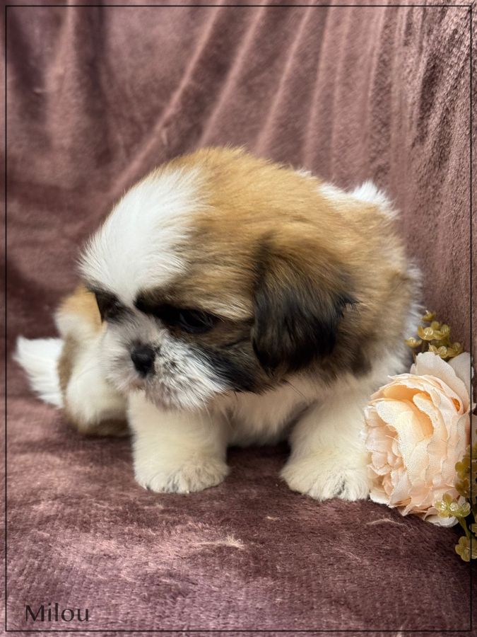 A réserver, Milou, superbe mâle type shih tzu , fauve et blanc, tout en rondeur, véritable nounours, né le 18 décembre dernier , disponible à partir de fin février, issu d'une portée de 4 chiots , bon type et très belle qualité de fourrure.Les deux parents sont inscrits au Lof. Milou est vendu pucé ,vacciné, certificat sanitaire de bonne santé, mutuelle pendant 2 mois offerte .Il est élevé dans un univers complètement familial, il fera le bonheur d'une famille. Il vous enchantera de part son look, son caractère ainsi que sa fourrure en abondance, facile d'entretien. Nous sommes proches de Lyon . Facilités de paiement possible en 4 fois par CB. Suivi et conseils après la vente. Garanti jusqu'à l'âge d'un an en cas de décès suite maladie ou malformation héréditaire ou congénitale