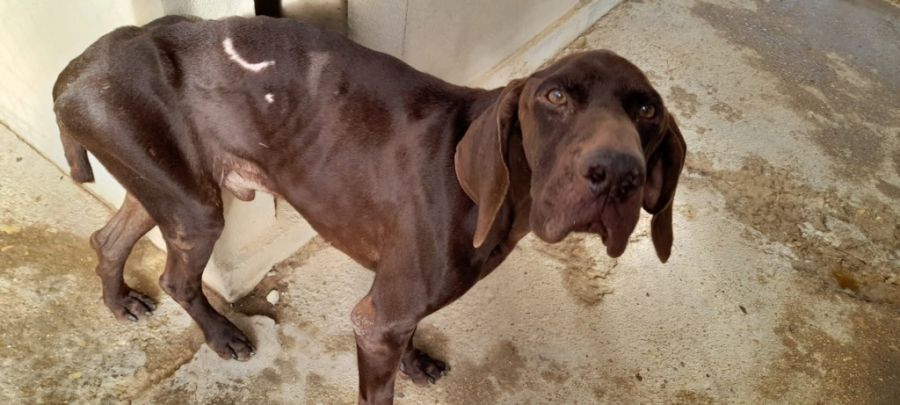 Né en décembre 2016, ce magnifique Braque allemand à poil court couleur chocolat est un chien senior à l’adoption qui mérite enfin la paix.