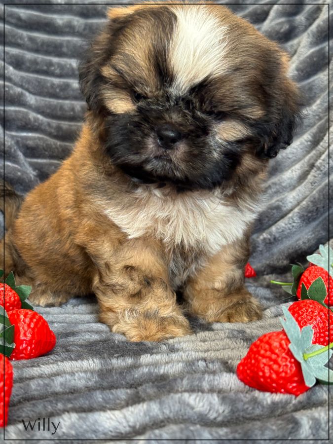 A réserver, Willy, superbe mâle type shih tzu , fauve et blanc, tout en rondeur, véritable nounours, né le 11 décembre dernier , disponible à partir de fin février, issu d'une portée de 2 chiots , bon type et très belle qualité de fourrure.Les deux parents sont inscrits au Lof. Willy est vendu pucé ,vacciné, certificat sanitaire de bonne santé, mutuelle pendant 2 mois offerte .Il est élevé dans un univers complètement familial, il fera le bonheur d'une famille. Il vous enchantera de part son look, son caractère ainsi que sa fourrure en abondance, facile d'entretien. Nous sommes proches de Lyon . Facilités de paiement possible en 4 fois par CB. Suivi et conseils après la vente. Garanti jusqu'à l'âge d'un an en cas de décès suite maladie ou malformation héréditaire ou congénitale.