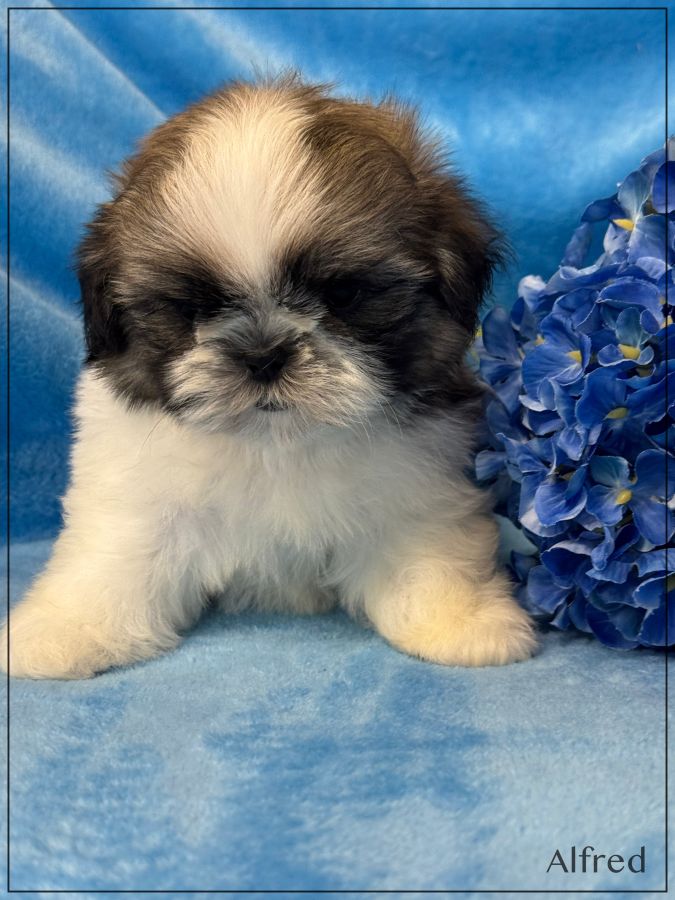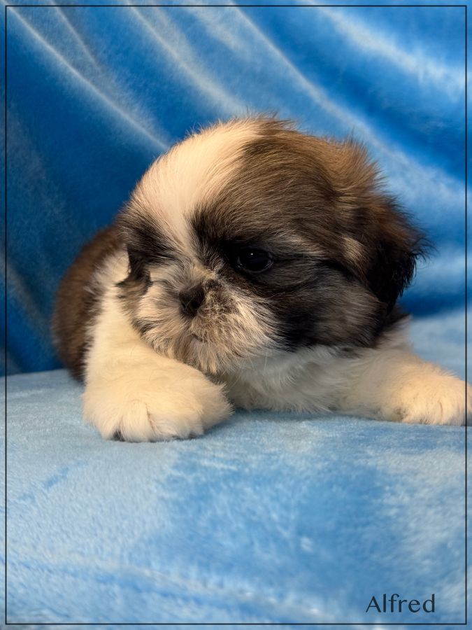 A réserver, Alfred, superbe mâle shih tzu , fauve et blanc, tout en rondeur, véritable nounours, né le 21 décembre dernier , disponible à partir de fin février, issu d'une portée de 5 chiots , bon type et très belle qualité de fourrure.Les deux parents sont inscrits au Lof. Alfred est vendu pucé ,vacciné, lof, certificat sanitaire de bonne santé, mutuelle pendant 2 mois offerte .Il est élevé dans un univers complètement familial, il fera le bonheur d'une famille. Il vous enchantera de part son look, son caractère ainsi que sa fourrure en abondance, facile d'entretien. Nous sommes proches de Lyon . Facilités de paiement possible en 4 fois par CB. Suivi et conseils après la vente. Garanti jusqu'à l'âge d'un an en cas de décès suite maladie ou malformation héréditaire ou congénitale